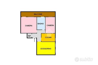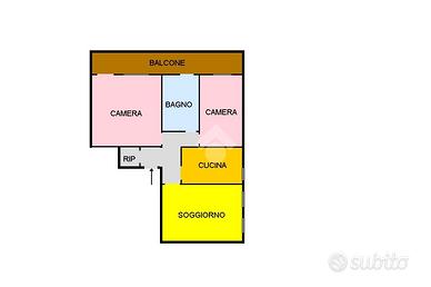 L'appartamento è composto da ingresso, soggiorno, cucina abitabile, bagno finestrato con doccia, camera da letto singola, camera da letto matrimoniale, ripostiglio e balcone. La disposizione degli ambienti e la doppia esposizione rendono l'immobile accogliente e luminoso.