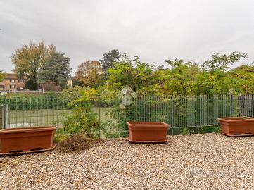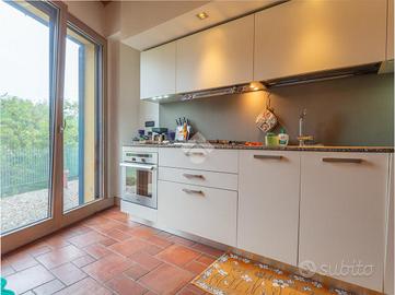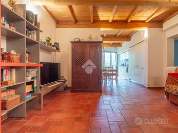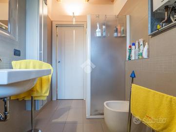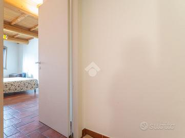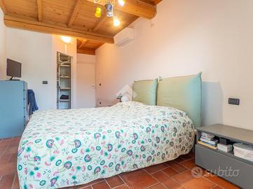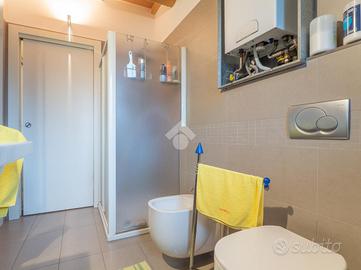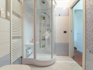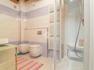 La zona notte ospita due camere da letto - una matrimoniale e una doppia - entrambe servite da una comoda cabina armadio e da un bagno con doccia multifunzione; è inoltre presente un secondo bagno con doccia e antibagno nella zona giorno. Riscaldamento a pavimento, Travi in legno a vista, Infissi con zanzariere,Termoautonomo. Completa la proprietà un posto auto privato all'interno della corte condominiale. Libero ad otto mesi dal preliminare. Ottima soluzione per chi cerca comfort, indipendenza e vicinanza al cuore della città!