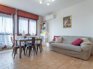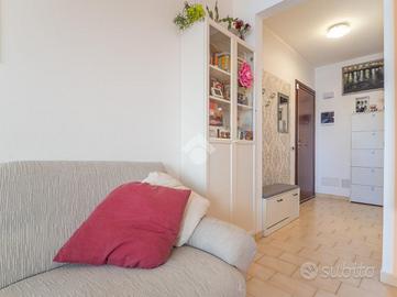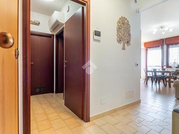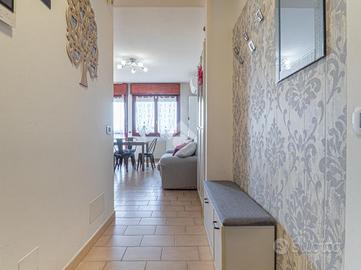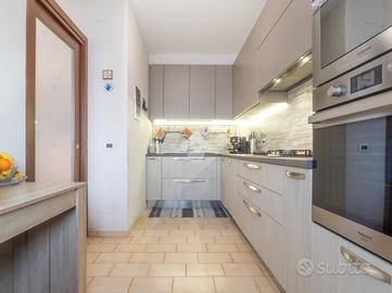 L'ingresso accompagna verso la zona giorno, dove la sala luminosa si apre su un balcone che regala luce e respiro agli ambienti. La cucina semi abitabile, realizzata su misura, è funzionale e ben organizzata, ideale per chi ama vivere la casa in modo pratico senza rinunciare all'estetica.