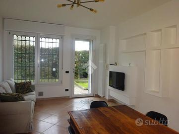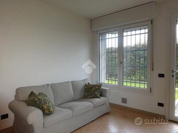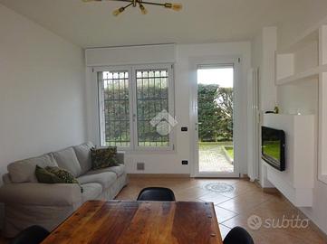 FERRARA località BOARA : appartamento bilocale al piano terra con ingresso indipendente, giardino di proprietà esclusiva di circa 100 mq situato in un complesso condominiale di 16 unità edificato nel 1999 e così composto: Ingresso su soggiorno/pranzo con angolo cottura, disimpegno, camera matrimoniale e bagno finestrato con doccia, garage con accesso diretto all'abitazione.