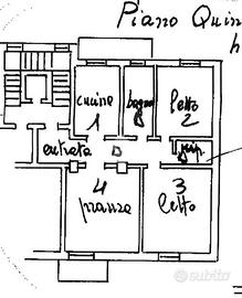 Si compone di: ingresso, cucina abitabile con balcone, tre camere da letto (una matrimoniale con balcone, una matrimoniale e un'ampia singola), disimpegno, bagno con vasca e ripostiglio.