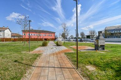 SAN MARTINO: Immobiliare Tecnocasa Poggio Renatico propone in vendita appartamento trilocale con due bagni. L'immobile è ubicato in via Navigazione, in un contesto di residence signorile composto da 3 palazzine, tutte finite tra il 2017 e il 2018, con grande parco condominiale, il tutto a poca distanza dai principali servizi offerti dal paese e vicino alla fermata del bus linea Ferrara - Bologna. L'appartamento, nello specifico, è sito al piano primo, libero su 3 lati. Internamente è in ottimo stato manutentivo, pari al nuovo, con finiture moderne ed attuali, sia dal punto di vista estetico che di risparmio energetico (infissi in PVC con triplo vetro) e si compone come segue: Zona giorno open space di ottima dimensione (27 mq) e ben suddivisa fra zona cucina e zona living, bagno di servizio con doccia, due camere da letto di cui una doppia (13mq) e una matrimoniale di ottime dimensioni (circa 16mq), esposta ad Ovest e dotata di vista sullo splendido parco condominiale e ulteriore bagno, finestrato e anch'esso con doccia. Completano la proprietà un garage di notevoli dimensioni (20 mq) e un posto auto di proprietà esclusiva. Inoltre, all'interno del parco condominiale, di comune accordo fra i condomini, è stato assegnato ad ognuno un appezzamento di terreno recintato da poter utilizzare in esclusiva, ad esempio per ricavare un orto o una zona relax immersa nel verde. Gli optionals presenti sono: zanzariere in ogni finestra e impianto di climatizzazione Innova 2.0 con Wi-Fi (controllo da remoto), senza unità esterna, posto in zona giorno. Inoltre, è presente una seconda predisposizione per split climatizzatore nella camera da letto matrimoniale. Tutte le utenze sono autonome, il riscaldamento è gestito da caldaia a condensazione marca Hermann, installata nel 2018 e dotato di termostato digitale programmabile. Libera entro gennaio 2027. Per ulteriori informazioni, rimaniamo a vostra disposizione allo