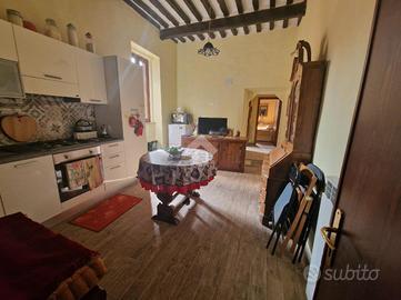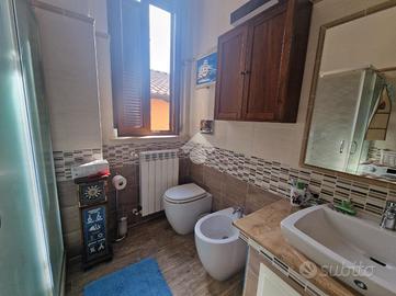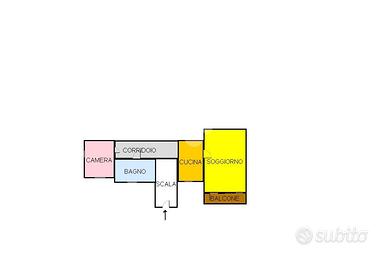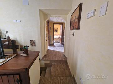 Un comodo disimpegno d'ingresso con un'elegante scala in muratura, conduce alla casa che si presenta con una cucina abitabile ed accesso diretto ad un salone doppio con camino e balcone, oltre la possibilità di realizzare un soppalco per ricavare un'ulteriore camera da letto. Proseguendo verso la zona notte dell'immobile, troviamo una camera matrimoniale padronale ed un bagno con doccia e finestra con soppalco.