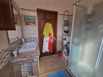 Un comodo disimpegno d'ingresso con un'elegante scala in muratura, conduce alla casa che si presenta con una cucina abitabile ed accesso diretto ad un salone doppio con camino e balcone, oltre la possibilità di realizzare un soppalco per ricavare un'ulteriore camera da letto. Proseguendo verso la zona notte dell'immobile, troviamo una camera matrimoniale padronale ed un bagno con doccia e finestra con soppalco.