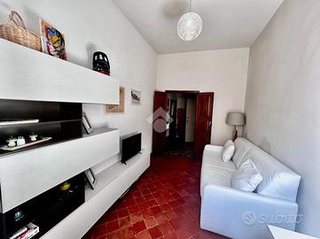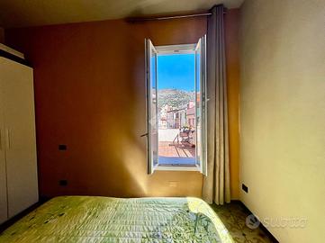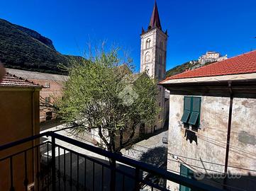 FINALBORGO - Trilocale con terrazzo e balcone nel cuore di Finalborgo, all'ultimo piano senza ascensore di un palazzo d'epoca. L'appartamento è composto da un soggiorno spazioso , una camera matrimoniale con uscita sul terrazzo , cucina abitabile con balcone da cui si gode la splendida vista del Castello San Giovanni e del complesso di Santa Caterina. Completa il bagno, finestrato e dotato di box doccia.