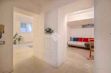 VIA MANNELLI - In elegante palazzina edificata nei primi anni del '900, appartamento di 90 mq utili situato al piano seminterrato. L'immobile, posizionato all'interno di un resede condominiale e con affacci lontani dalla strada, è così composto: ingresso con disimpegno, scala che conduce al cuore dell'immobile dove troviamo un' ampia sala con zona pranzo, cucina abitabile, una camera matrimoniale, un ulteriore vano utilizzabile come studio oppure come stanza guardaroba, antibagno e bagno sprovvisto di finestra oltre comodo e pratico ripostiglio lavanderia. Dotato di impianto di riscaldamento autonomo, l'appartamento si caratterizza per il notevole pregio architettonico dell'edificio in cui è ubicato e per gli ambienti spaziosi e ben distribuiti.