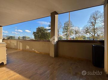 L'immobile, unico al piano, si compone di ingresso, ampio disimpegno, zona living con accesso alla terrazza abitabile tergale di 85mq, due grandi camere da letto dalle quali si accede al secondo terrazzo abitabile di 15mq, cabina armadio e servizio finestrato.