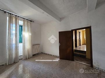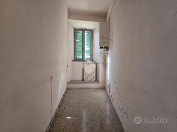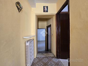 Tipologia interna ideale per un'abitazione principale: ingresso, cucina abitabile con camino, salone con balconcino a livello, due camere da letto ( entrambe finestrate con affaccio sia su Corso Sorelle Faioli che su Piazzetta Oberdan, ampio ripostiglio finestrato e bagno ( con vasca e finestra). L'altezza del piano permette la giusta luminosità degli ambienti che si affacciano sul Corso Principale.