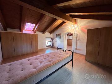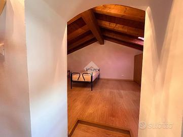 Salendo al secondo piano, la zona notte si compone di due ampie camere da letto matrimoniali, entrambe luminose e ben proporzionate, ideali per una famiglia o per chi desidera avere uno spazio in più per gli ospiti o un eventuale studio.