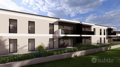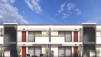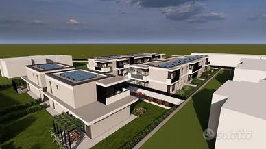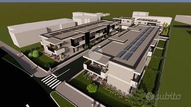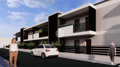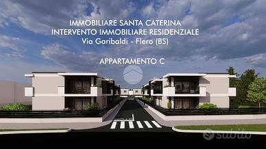 Nuova realizzazione, nella zona centrale di Flero, vicina a tutti i principali servizi. Il progetto prevede la realizzazione di un complesso residenziale formato da due ville singole con ampio giardino, quattro ville a schiera e un condominio disposti su due livelli di sole 8 unità. Gli appartamenti saranno trilocali e quadrilocali, entrambi con doppi servizi, giardini o terrazze di proprietà. Tutti gli appartamenti avranno un ampio box di pertinenza nel piano interrato. Le ville singole saranno sviluppate su due livelli, con box all'americana e zona giorno al piano terra, zona notte con 3 camere, doppi bagni e lavanderia al piano primo. Le ville a schiera si svilupperanno su due livelli con box e zona giorno al piano terra, giardini e corti private. La soluzione proposta ha accesso indipendente e direttamente nel giardino frontale. Il porticato ospita il portoncino blindato d'ingresso. L'accesso è nell'ampia zona giorno con parete cottura, illuminata dalla scenografica parete vetrata sul fondo. Un bagno cieco di servizio completa la zona giorno. Il disimpegno conduce alle 2 camere, una matrimoniale una doppia, e nell'ulteriore bagno della soluzione. Il piano interrato, raggiungibile dalla scala esterna coperta, ospita l'ampio box di pertinenza alla soluzione. Le soluzioni verranno costruite in elevato standard qualitativo in classe energetica A, con riscaldamento a pavimento con pompa di calore e ventilazione meccanica puntuale dei singoli ambienti. Ogni immobile verrà collegato ad un impianto da 3 kW di pannelli solari fotovoltaici. Il capitolato prevede inoltre l'istallazione di tapparelle elettriche, la posa di sanitari sospesi e le predisposizioni per impianto di raffrescamento e antifurto per le soluzioni in appartamento. Le ville verranno realizzate con impianto di riscaldamento e raffrescamento a pavimento e impianto di ventilazione meccanica e deumidificazione degli ambienti. L'acquisto in fase di progetto permette di personalizzare tranquillamente fin