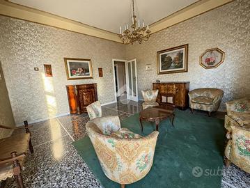 Il salotto ampio e luminoso è un abbraccio d'epoca: divani fiorati, poltrone comode, lampadario di cristallo che danza con la luce del pomeriggio, quadri alle pareti che sembrano finestre su paesaggi lontani. C'è ancora l'odore di libri sfogliati, di tè pomeridiano; anch'esso con uscita sul balcone, ideale per momenti di relax e convivialità.