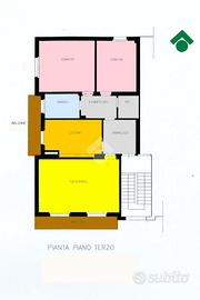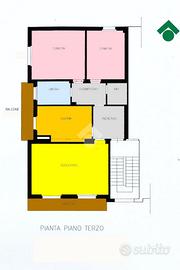 TRAVERSA DI VIA DAMIANO CHIESA In zona tranquilla e ben servita, appartamento al terzo ed ultimo piano di condominio composto da solo sei unità abitative. L'immobile si apre su un ingresso che conduce all'ampio soggiorno con accesso al terrazzo e alla cucina abitabile dotata di camino collegata ad un secondo terrazzo. La zona notte è composta da un disimpegno, due camere matrimoniali, un bagno con doccia ed un comodo ripostiglio. Al piano terra completano la proprietà un garage di 27 mq circa ed una piccola corte di proprietà esclusiva.