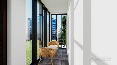 L'immobile in questione è un meraviglioso appartamento posto al secondo piano . L'immobile nel suo interno è diviso in salone con cucina a vista , due camere da letto , un bagno . L'appartamento è circondato dal suo spazio esterno con un piccolo portico chiudibile a vetri che ti permetterà di vivere questo spazio anche in inverno ed un balcone di circa 30 mq . Tutte le camere hanno accesso all'esterno per garantirti comodità e luminosità . A parte potrai acquistare box auto di varie dimensioni e cantine . Beh mi sembra che alla tua casa ideale non manca proprio nulla . . . COSA ASPETTI?