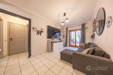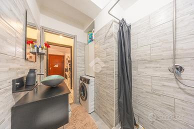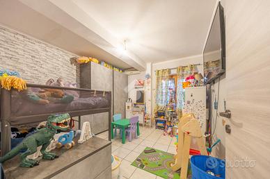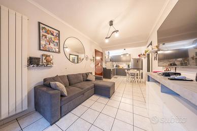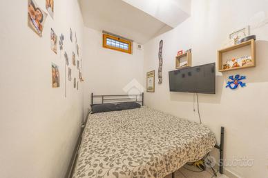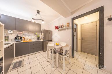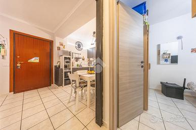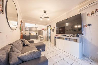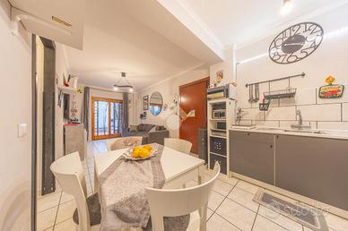 Questo trilocale al piano terra accoglie con un'atmosfera intima e riservata, raggiungibile scendendo pochi gradini che segnano simbolicamente il passaggio dal fuori al proprio spazio di casa. L'ingresso introduce subito nella zona giorno, un ambiente caldo e conviviale dove soggiorno e cucina si fondono naturalmente, creando il cuore pulsante dell'abitazione, ideale per condividere momenti di relax e quotidianità.