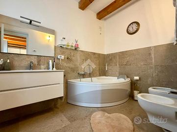 La zona notte comprende due camere matrimoniali. La camera padronale dispone di bagno privato en suite ed è impreziosita da una raffinata vasca idromassaggio in camera, dettaglio esclusivo che dona eleganza e massimo comfort. Presente inoltre un secondo bagno completo di doccia e funzionale zona lavanderia.
