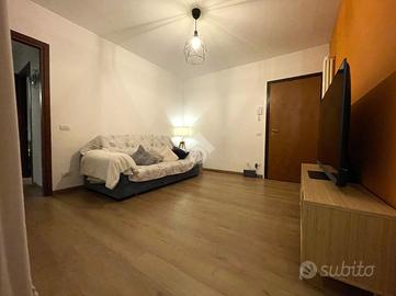 L'immobile, completamente ristrutturato nel 2019, si presenta in ottime condizioni ed è pronto per essere abitato. L'ingresso conduce direttamente alla zona giorno open space, composta da un accogliente soggiorno con accesso a una comoda loggia, ideale per momenti di relax, e da un angolo cottura a vista completo di cucina moderna. Attraverso un pratico corridoio si accede alla zona notte, dove trovano spazio un'ampia camera matrimoniale, una camera singola e un bagno finestrato dotato di doccia.