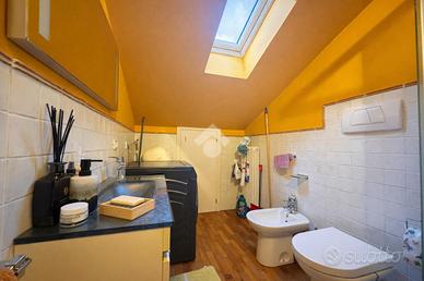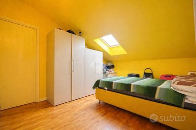 Salendo al piano superiore, sviluppato nel sottotetto, troviamo la zona notte composta da due camere da letto, di cui una con accesso ad un comodo balconcino riservato, oltre a un secondo bagno che completa il piano, rendendo la distribuzione degli spazi funzionale e ben organizzata.