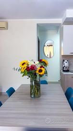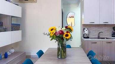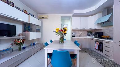 L'immobile, posto al piano sottostrada, si presenta in ottime condizioni interne e si compone di un soggiorno con angolo cottura, due camere matrimoniali, un bagno con box doccia e un posto auto condominiale. Dotato di impianto di climatizzazione, l'appartamento è pronto per essere abitato o utilizzato come casa vacanza, con tutti i comfort necessari per vivere in tranquillità.