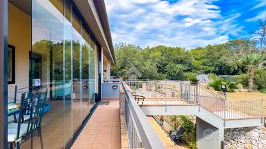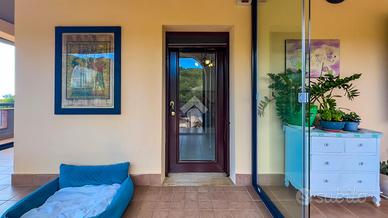Un porticato complessivo di 114 mq completa la vivibilità esterna: 56 mq verandati, chiusi da porte-finestre in vetro, utilizzabili tutto l'anno e 58 mq aperti, ideali per vivere l'esterno nelle stagioni più miti. Uno spazio che amplia concretamente la superficie abitativa.