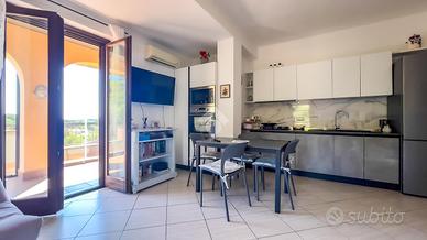 Interni funzionali e ben distribuiti. I 60 mq interni sono organizzati in modo semplice ed efficace: soggiorno con cucina a vista e zona pranzo, camera matrimoniale, camera singola e bagno finestrato con box doccia