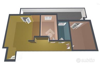 La zona notte è composta da una camera matrimoniale e una seconda stanza versatile, che può essere utilizzata come cameretta, studio o spazio creativo, a seconda delle esigenze. Il bagno, finestrato e con vasca, offre comfort e funzionalità.