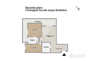 La zona notte comprende due comode camere da letto, di cui una con accesso al terrazzo, oltre a un bagno finestrato con box doccia.
