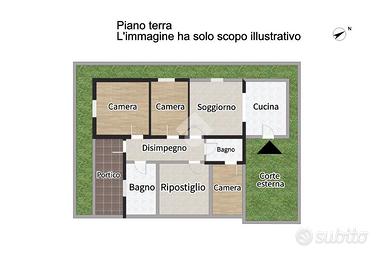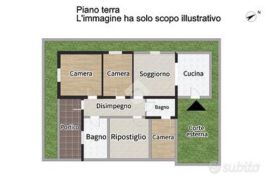 L'immobile è composto da un ampio soggiorno open space con cucina a vista, dalla quale si accede direttamente alla corte esterna.