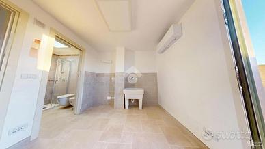 Gli spazi esterni includono un balcone e doppi terrazzini.