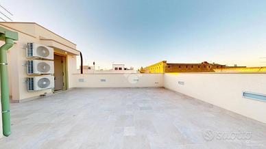 La disposizione interna comprende un'ampia sala con affaccio sulla bellissima via Roma, due camere da letto, due bagni a livello.