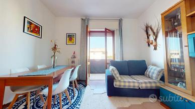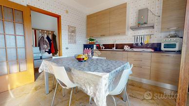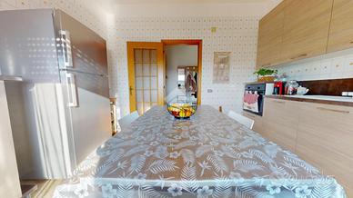 Una cucina conviviale e ben organizzata ci accoglie ed è resa luminosa grazie ad un grande balcone che abbraccia anche le stanze.