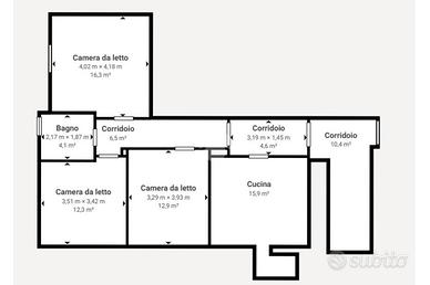 Gli spazi sono ben distribuiti, e da u comodo corridoio accediamo agli ambienti.
