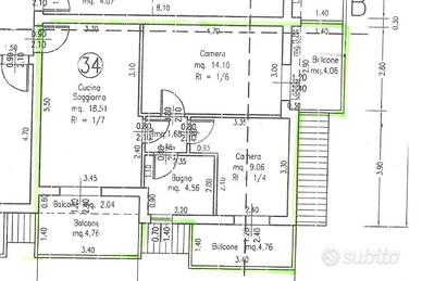 L'immobile è composto da un soggiorno con angolo cottura, due camere da letto, ciascuna con balcone, un bagno. Tutti gli ambienti hanno accesso sul balcone (3 balconi).