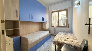 La zona notte ospita due camere da letto, una matrimoniale e una singola, oltre a un bagno finestrato con doccia e a un comodo ripostiglio, elemento sempre più raro e funzionale.