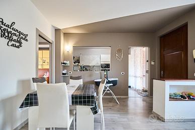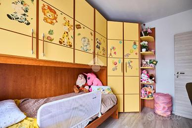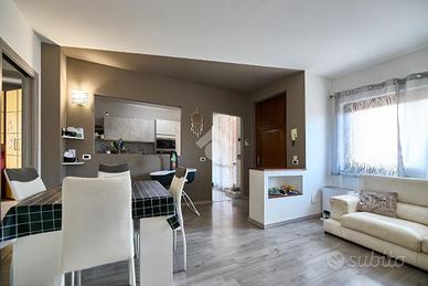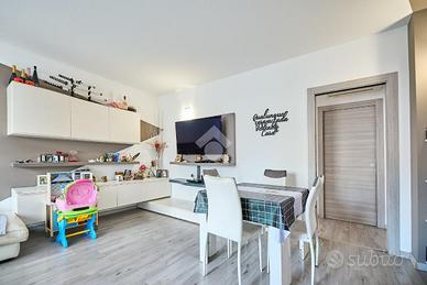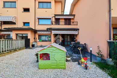 Alle spalle del centro del paese, vicino alla fermata dell'autobus ed ai principali servizi. La zona è tranquilla e ben abitata, davanti casa è presente un piccolo parcheggio pubblico. Questa soluzione è perfetta per chi cerca un appartamento con uno spazio esterno e senza barriere architettoniche. La palazzina è stata costruita verso la fine degli anni '90 e si presenta in ottime condizioni nelle parti comuni. L'appartamento situato al piano terra gode di ingresso indipendente direttamente nel suo giardino privato. uno spazio esterno ampio e vivibile, studiato per essere gestibile senza troppa manutenzione, inoltre è presente un barbecue e uno spazio giochi. Il giardino è adiacente al porticato e ci sono le tende da sole per ampliare le zone d'ombra e usufruire degli spazi all'aperto anche nelle ore più soleggiate. L'ingresso all'appartamento è nella zona living, ben gestita, da una parte la cucina abitabile e dall'altra la zona salotto con il divano e il tavolo da pranzo. Dalla sala un disimpegno accompagna al bagno ed alle camere da letto, una singola e una matrimoniale. L'appartamento è stato parzialmente ristrutturato, la pavimentazione è stata rifatta in laminato grigio e le porte interne sono state sostituite, anche il bagno è stato completamente ristrutturato e dove c'era la vasca è stato messo un box doccia doppio, inoltre sono presenti l'impianto di allarme e la predisposizione per l'impianto di aria condizionata. Completano la proprietà la cantina ed il box auto.
