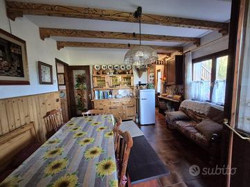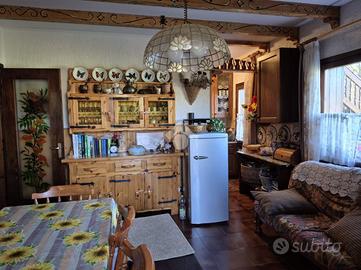 L'abitazione, dotata di ingresso indipendente e terrazza privata, si apre su un ampio soggiorno con caminetto a legna e un angolo cottura.