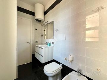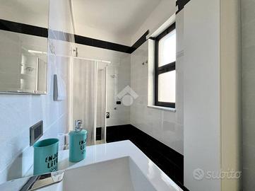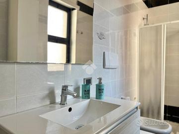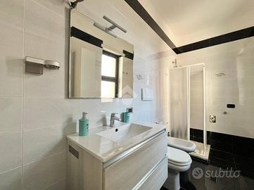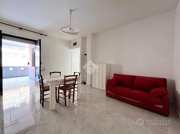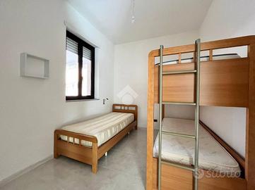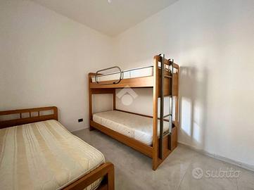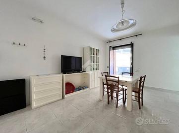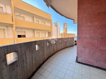 L'appartamento è composto da tre locali ben distribuiti, con un'ottima esposizione che garantisce luminosità durante tutto il giorno, nello specifico l'appartmento è composta da: ingresso nella sala da pranzo, cucinotto separato, comodo bagno finestrato con box doccia, cameretta dotata di letto a castello più un letto singolo, camera da letto matrimoniale con balconcino di pertinenza e terrazzo a livello vista mare. In questo appartamento abbiamo la fortuna di poter godere l'incomparabile lusso di un terrazzo a livello con vista mare, il tuo angolo privato per cene all'aperto e momenti di puro relax ammirando l'orizzonte. Questo spazio esterno privilegiato estende la tua zona giorno, offrendoti un valore aggiunto unico in condominio e trasformando ogni risveglio in una cartolina. Inoltre l'abitazione è dotata di un sistema di riscaldamento e raffreddamento a soffitto, che assicura comfort in ogni stagione. L'appartamento viene venduto comprensivo di arreadamento.