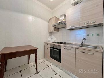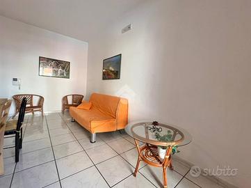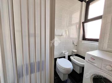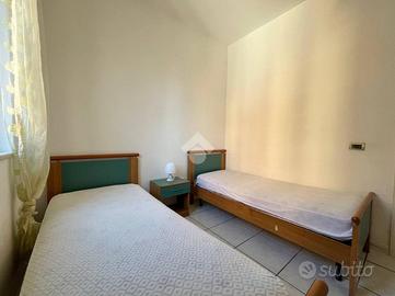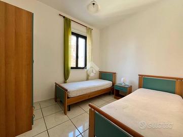 La zona notte separata dalla zona giorno da un piccolo disimpegno è composta da: bagno dotato di tutti i servizi, inclusa anche una lavatrice e box doccia; due camere da letto, una matrimoniale spaziosa e luminosa con un arredamento sobrio che permette di personalizzare la stanza secondo i propri gusti rendendola un angolo tranquillo all'interno della casa; la seconda camera, ideale per ospiti o bambini si presenta anch'essa accogliente e luminosa grazie alla finestra che può godore della vista mare, regalando un panorama unico.