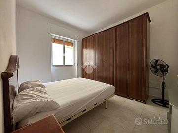 Accedendo dalla porta di ingresso dell'appartamento si è accolti da un ingressino che da direttamente nel soggiorno-cucina. L'unico ambiente adibito a zona pranzo contiene: cucina componibile, tavolo da pranzo e sedie, divano e mobile tv. Da questo ambiente si può accedere direttamente in un balcone che è stato verandato, questo ultimo spazio ottenuto dal balcone è un ottimo ambiente da adibire a deposito per gli attrezzi di tutti i giorni. Proseguendo nel corridoio troviamo il bagno, che è stato ristrutturato circa 10 anni fa, e le due camere da letto entrambe matrimoniali.