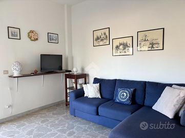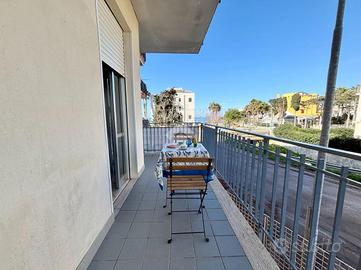 L'immobile, in ottime condizioni, offre una vista mare che arricchisce l'atmosfera di ogni giornata. La disposizione interna comprende due camere da letto matrimoniali, un soggiorno con balcone di competenza, una cucina abitabile e completa la proprietà un bagno ristrutturato pochi anni fa.