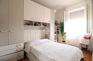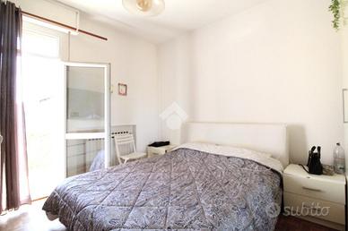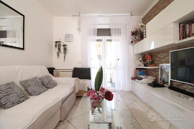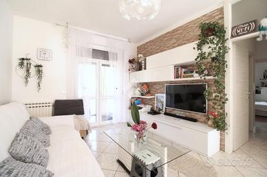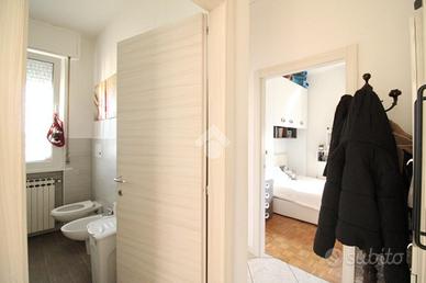 L'ingresso si apre sulla zona giorno, composta da cucina abitabile e salotto: entrambe sono dotate di porta-finestra con affaccio sul balcone, donando così luce e aria ai due ambienti.