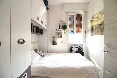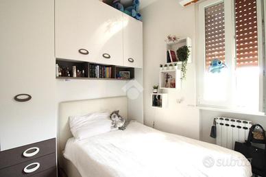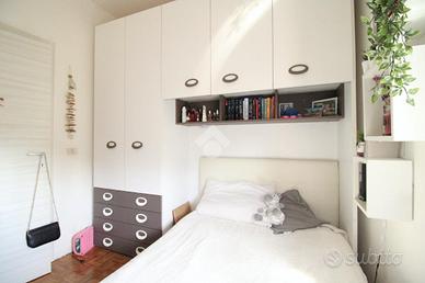 Dal corridoio si accede alla zona notte, composta da tre camere (una matrimoniale, una singola e uno studio), con pavimentazione in parquet; la camera padronale ha l'accesso ad un ulteriore balcone, con affaccio sul verde condominiale.