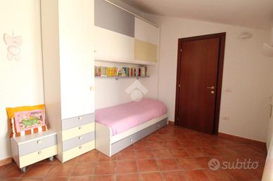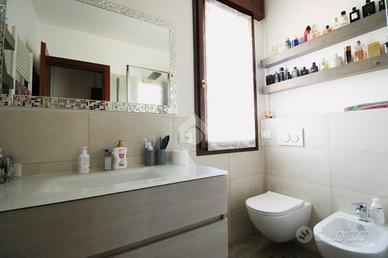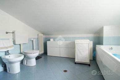 Arricchisce la zona notte il secondo bagno con box doccia e vasca e un ulteriore vano adibito a funzionale lavanderia e ripostiglio.