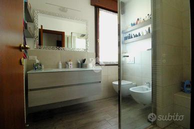 Al piano troviamo poi la prima camera matrimoniale con affaccio su un secondo balcone e IL bagno finestrato, servito da box doccia con ante in vetro.