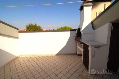 L'ingresso si apre su una luminosa e spaziosa zona giorno, composta da angolo cucina e ampio soggiorno in stile moderno. L 'ambiente è dotato di porta-finestra che si apre su una splendida terrazza abitabile perfetta per passare momenti di convivialità con amici e famiglia.