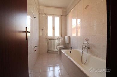 La zona notte è composta da due camere, una matrimoniale con porta finestra e uno studio ; qui troviamo anche il bagno finestrato, servito da una comoda vasca e un pratico ripostiglio.Tutte le finestre dell'appartamento sono in legno con doppio vetro. Nell'appartamento è già presente l'impianto di condizionamento, da rinnovare rimane lo split interno prima posizionato nel disimpegno notte.
