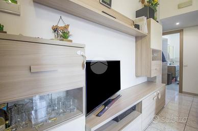 Posto al primo piano, l'appartamento accoglie con una luminosa zona giorno con cucina a vista, un ambiente caldo e ben distribuito che accompagna verso l'ampio balconcino, dove un comodo ripostiglio è stato organizzato come zona lavanderia, perfetta per ottimizzare gli spazi senza rinunciare alla funzionalità.