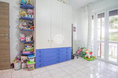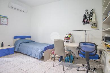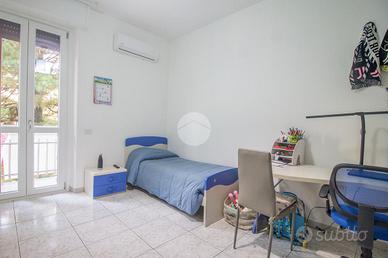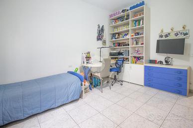 Proseguendo lungo il disimpegno si raggiunge il bagno finestrato con doccia, moderno e curato nei dettagli, seguito dalla cameretta, anch'essa servita da un secondo balconcino che regala luce e aria all'ambiente. A completare la zona notte, la camera matrimoniale, spaziosa e confortevole, ideale per chi desidera un luogo rilassante e ben organizzato.