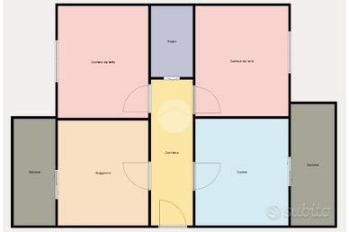 L'abitazione si sviluppa su una superficie di circa 97 mq, con ambienti ampi e luminosi che raccontano una casa da vivere e personalizzare. L'ingresso conduce a un soggiorno di generosa metratura, cuore della casa, perfetto per momenti di relax e convivialità. La cucina abitabile, separata e funzionale, è arricchita dalla presenza di un balcone, ideale per una pausa all'aria aperta.