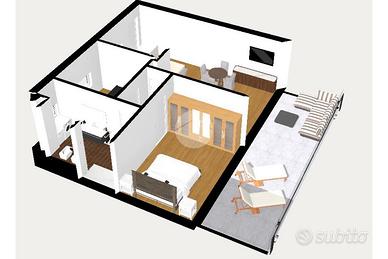 L'immobile è stato rifinito con materiali di pregio, ed è composto da una spaziosa e luminosa zona giorno con sfogo sulla terrazza, ed una angolo cottura.
