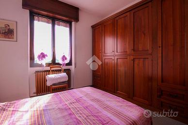 L'appartamento è dotato di due ingressi: il primo tramite il portoncino in comune sito sul fronte della soluzione, il secondo, tramite porta d'ingresso, sito sul lato destro del contesto.